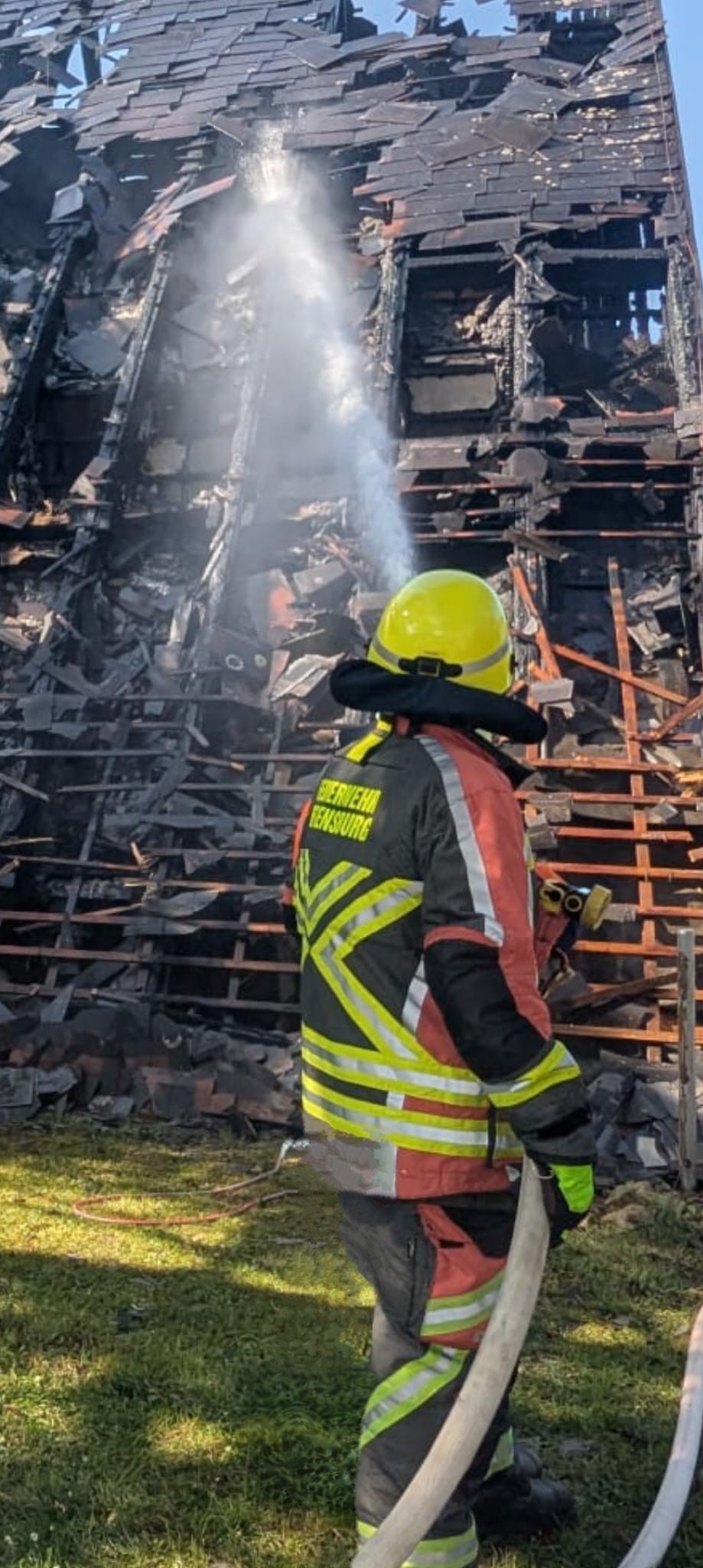 Mit 20 Feuerwehrdienstleistenden konnten wir 4 Trupps unter Atemschutz und zwei weitere Trupps ohne Atemschutz zur Bekämpfung des Brandes einsetzen, nachdem wir teilweise aus grösserer Entfernung mittels zwei Hydranten die Löschwasserversorgung sicherten.