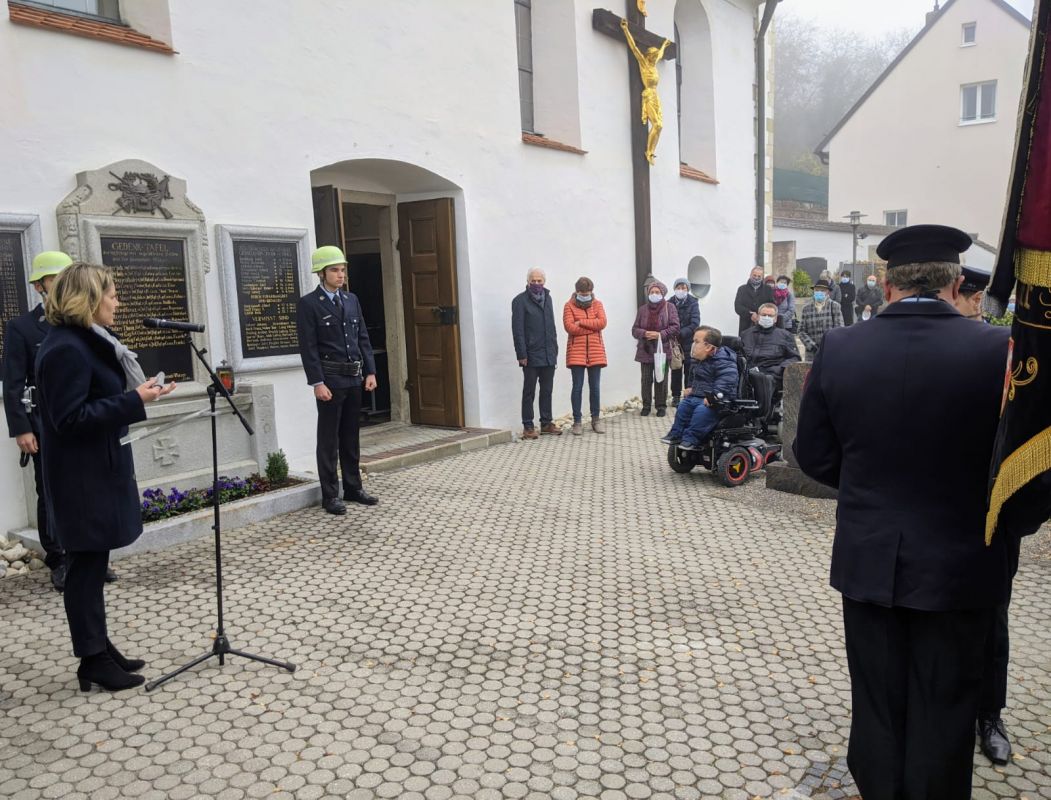 Traditionell eine Woche vor dem bundesweiten Volkstrauertag gedenken Pfarrgemeinde und Vereine in Winzer den Toten aus Kriegen und Opfern von Terror und Gewalt. In diesem Jahr sprach Bürgermeisterin Dr. Astrid Freudenstein als Vertreterin der Stadt Regensburg die Gedenkworte. Sie wies in Ihrer Rede explizit auf die Aktualität des Gedenkens hin. Erst vor wenigen Tagen kamen Unschuldige in Wien bei einem Terroranschlag ums Leben.