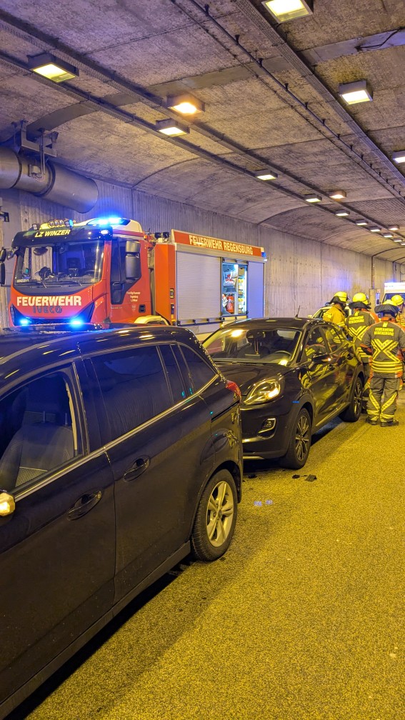 Am späten Nachmittag wurde der Löschzug Winzer gemeinsam mit der Rüstzug der Berufsfeuerwehr Regensburg, der Unterstützungsgruppe örtliche Einsatzleitung und den Feuerwehren aus Sallern, Pentling und Lappersdorf zu einem Unfall mit mehreren PKW in den Tunnel Pfaffenstein alarmiert. Nach Eintreffen im Bereitstellungsraum wurde die Örtlichkeit aktualisiert und wir fuhren in den Tunnel Prüfening an. Bei Ankunft an der Unfallstelle wurden die Personen vom Rettungsdienst betreut. Wir stellten mit dem Tanklöschfahrzeug den Brandschutz sicher und sicherten die Einsatzstelle ab. Nach 90 Minuten konnten wir wieder ins Gerätehaus zurückkehren.